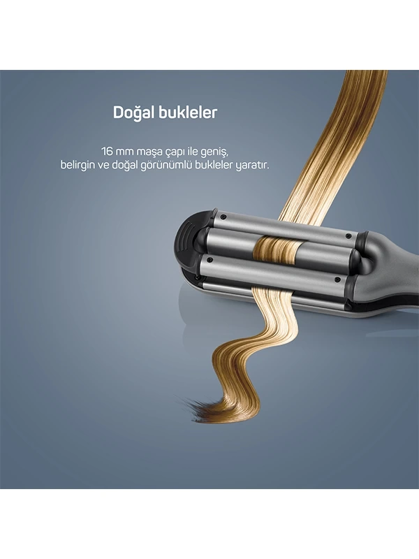 16 mm maşa çapı ile geniş, belirgin ve doğal görünümlü bukleler yaratır.