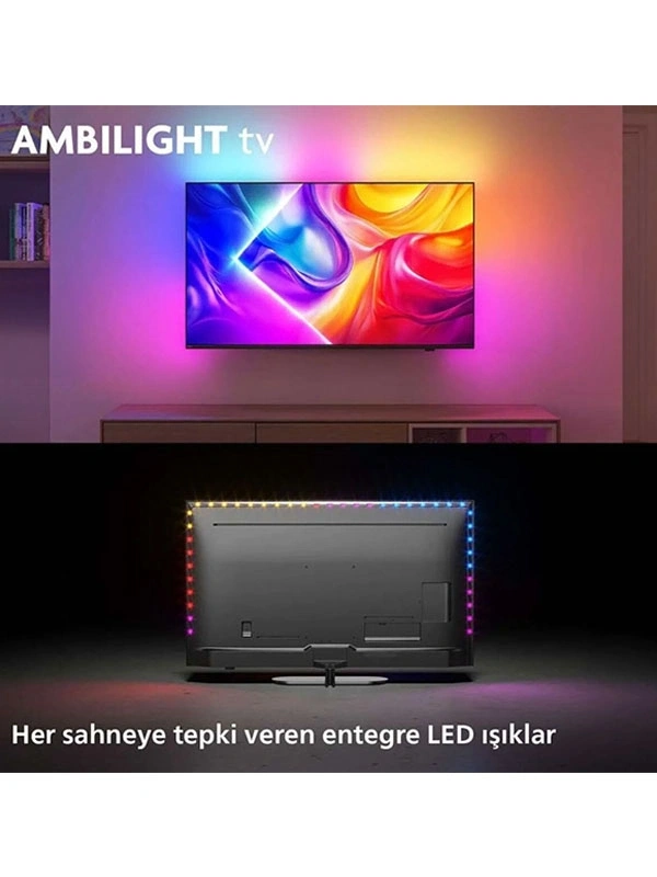 İzlediğiniz her şeye tepki veren entegre LED ışığın sizi bir renk halesinin içine çektiğini hayal edin. Ambilight oyunun kurallarını değiştiriyor. Artık ekranınız daha büyük görünecek ve sizi favori televizyon içeriklerinizin derinliklerine sürükleyecek. Bir kez deneyimledikten sonra bu TV özelliği vazgeçilmeziniz haline gelecek.